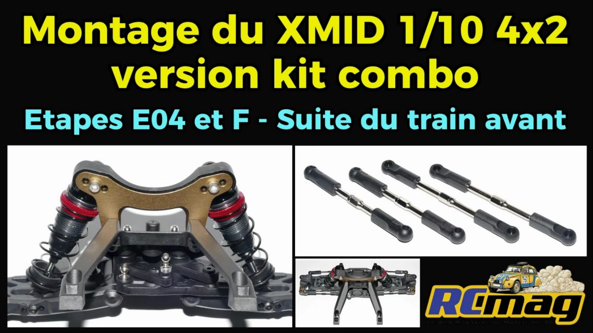Suite du train avant avec les étapes E04 et F - Montage du buggy XMID 1/10 4x2 version kit combo