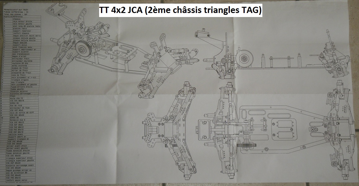 j'ai réalisé des triangles en plastique blanc en proto version longue ,pour les tous premier TT (ensuite adaptation des triangles kyosho Burns)