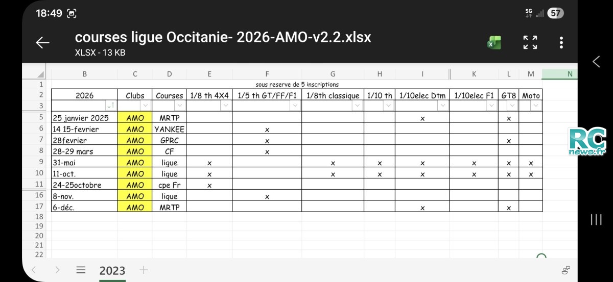 CALENDRIER COURSE TT 1/10 EL LIGUE OCCITANIE SAISON 2026