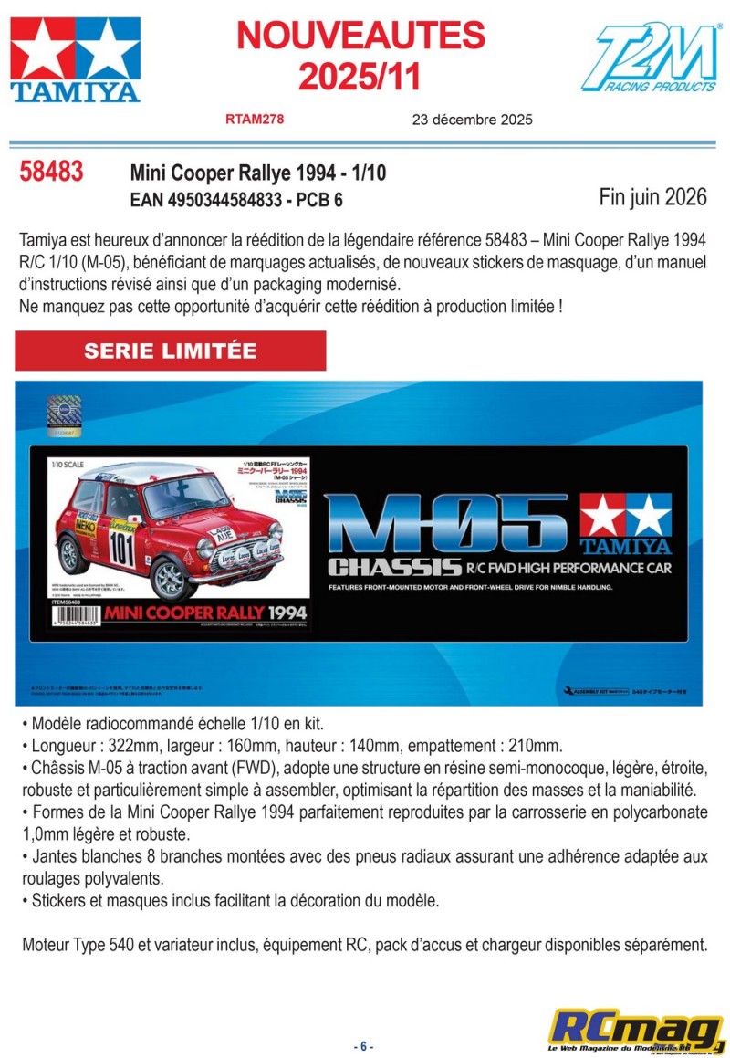 MessagePosté le: 26.01.2026, 01:19:32    Sujet du message: Mini Cooper Rallye 1994 chassis M05 ref 58483 Répondre en citant