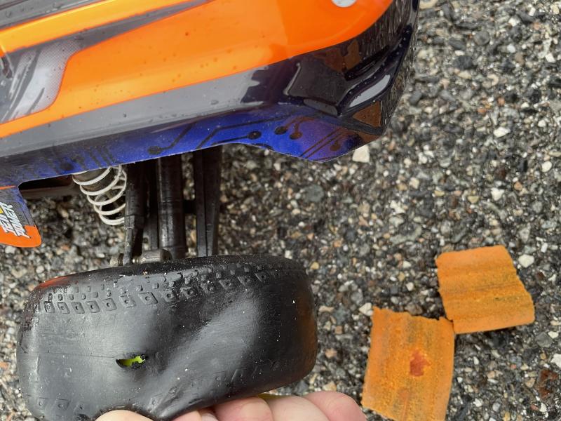 J'ai testé plusieurs configuration pour les pneus, sans succès... soit ils se décollaient, soit la tenu de route était minable.... Le hic, c'est le tarif des pneus d'origine (qui sont TOP) du coup, idée de génie soufflée par @Tomcat ! : Utiliser des adaptateurs de roues en 17, comme les buggy 1/8 par exemple...