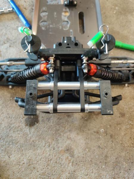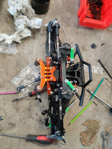 El famoso support de diff central, qui n'est aligné qu'avec 2 trous, le bac a batterie toujours trop petit (ça je crois que je n'arriverais jamais à trouver la bonne taille)...