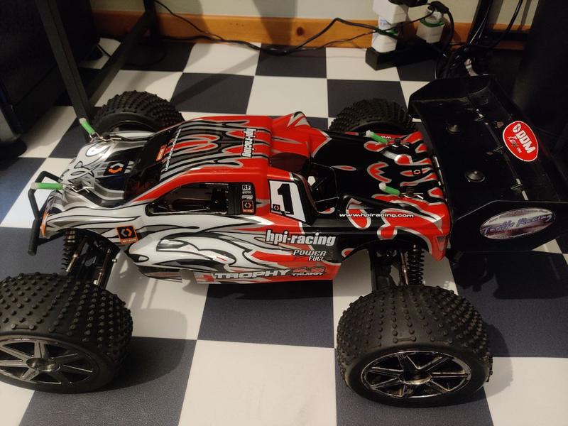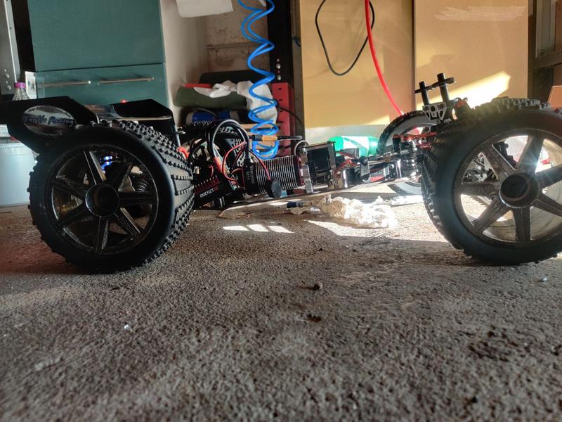 Première chose que j'aurais dû faire avec le buggy, la pesée, on part donc d'une base de 4,642 kilo avec 1/2 plein et une poignée de lanceur cassé....