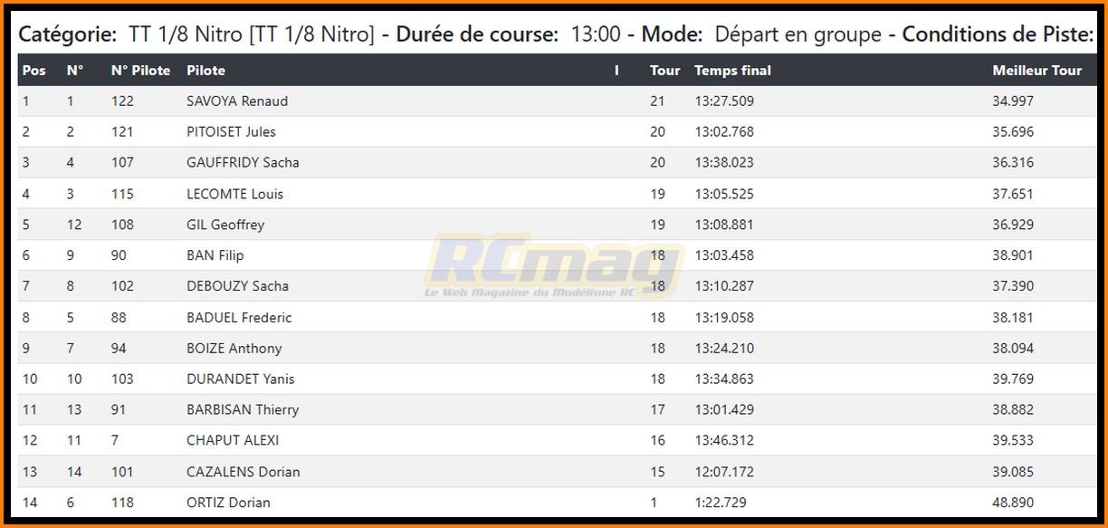 🔥 Un événement spectaculaire à ne pas manquer ! Venez vibrer au rythme des moteurs et encourager les pilotes ! _________________ rcmag.com pour le forum, les photos et vidéos