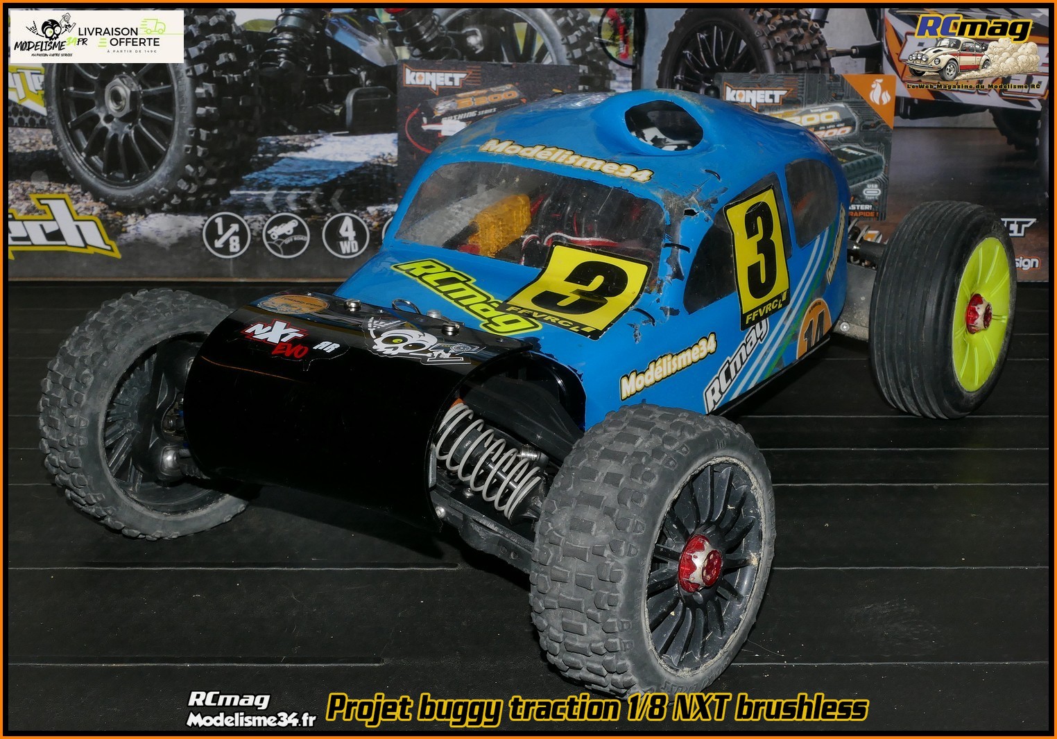 La base ce sera mon stock de pièces NXT ( toutes générations ) et les restes de mon NXT RR 2020. Pour la motorisation on va utiliser un combo similaire au montage réalisé sur le Kyosho Neo light qui est vraiment satisfaisant. Moteur type short course 4x4 utilisable en 2s ou 3s. Avec un combo 1/8 il me semble qu'on sera trop lourd et trop puissant pour du traction. Et pour les pneus, gros pavés 100% loisir  _________________ rcmag.com pour le forum, les photos et vidéos
