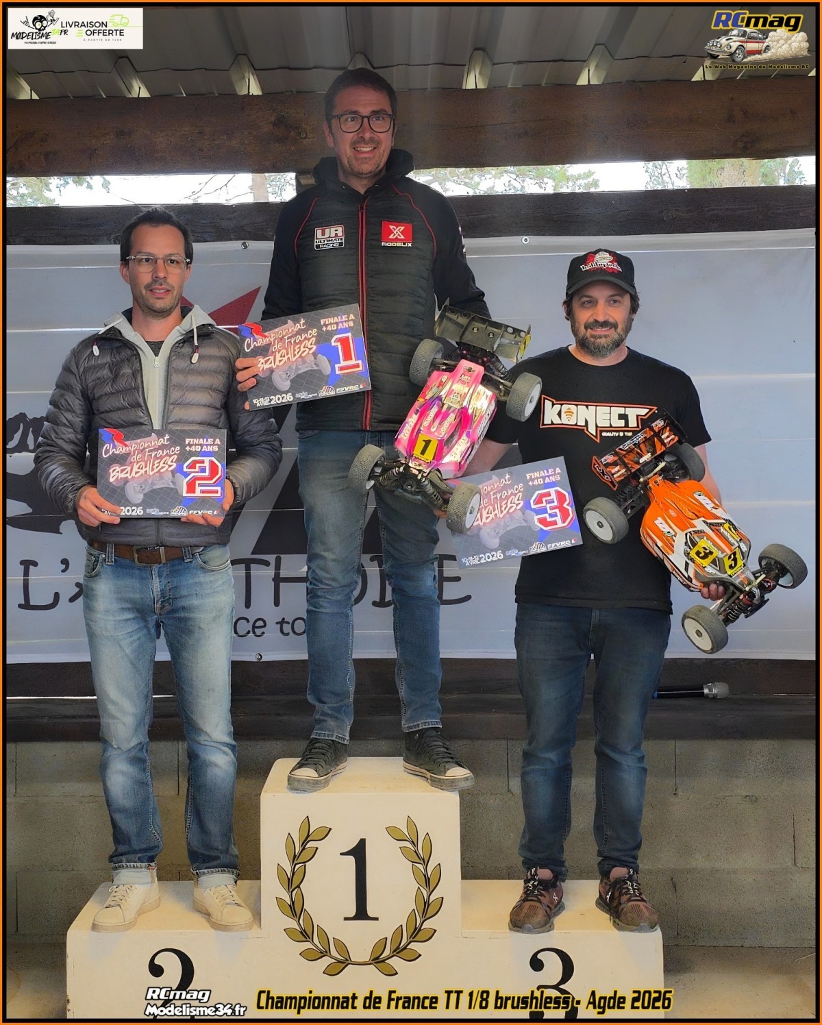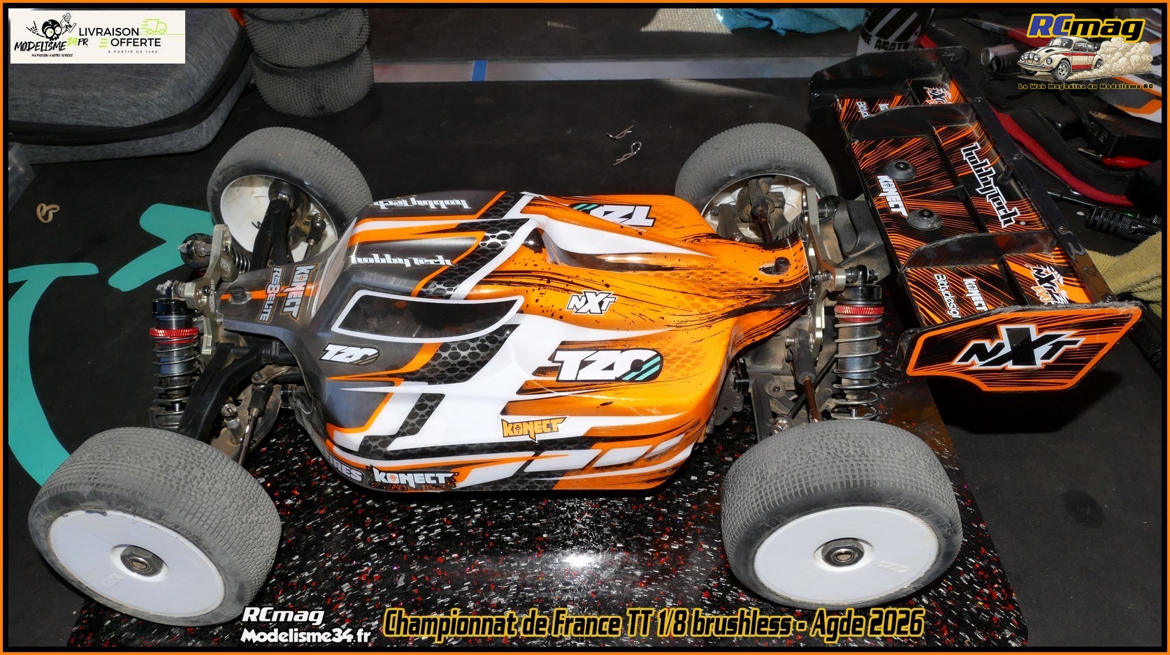 Le NXT RR Evo de Stéphane Matéo qui fini sur le podium du championnat de France TT 1/8 brushless ( 40 ans ) organisé par le club d'Agde OK!